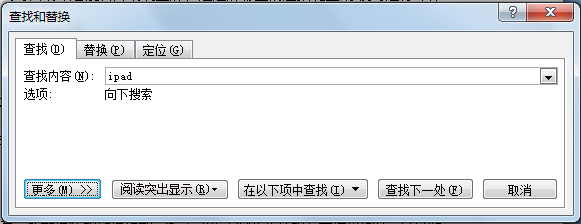 ②全字匹配:若选中此项,会查找完整的词或单词的一部分,需要完整地匹配查找串。