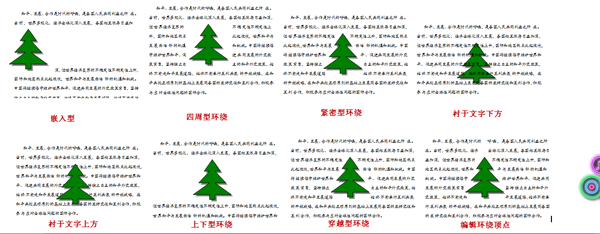 默认的插入图片操作是直接将图片嵌入到插入点之处,处于文本层,与普通文本相当,它会随着插入点的移动而移动。如果为图片设置文字环绕方式,则可自由地移动图片的位置。