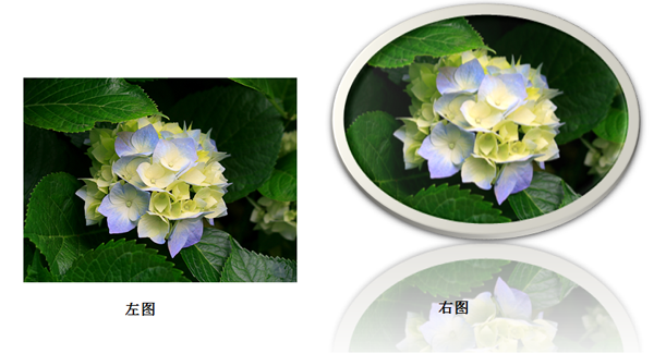 插入图片(如图3-54左图),利用内置样式中的【图片边框】和【图片效果】等工具,以达到图 3-54右图所示的效果。