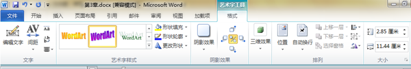 首先,选定艺术字,此时在功能区出现【艺术字工具-格式】选项卡。