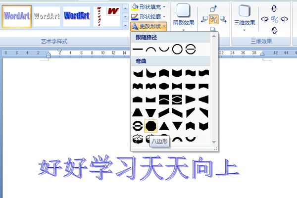 在图 3-59中,给出设置“八边形”的艺术字显示出的效果。