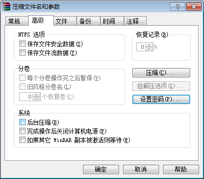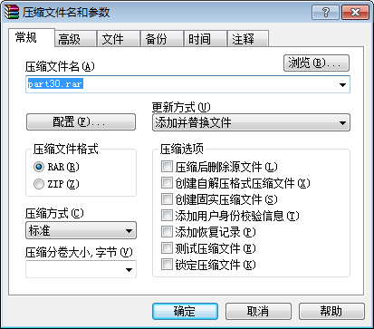 图2- 61压缩文件的参数对话框